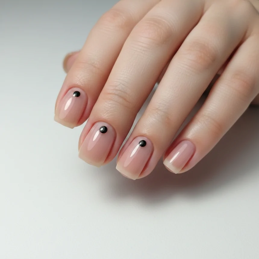 For a modern and edgy touch, these minimalist prom nails use negative space to create a clean, contemporary look. The tiny black dot adds just enough intrigue without overwhelming the simplicity. Perfect for those with an avant-garde or dark academia aesthetic.