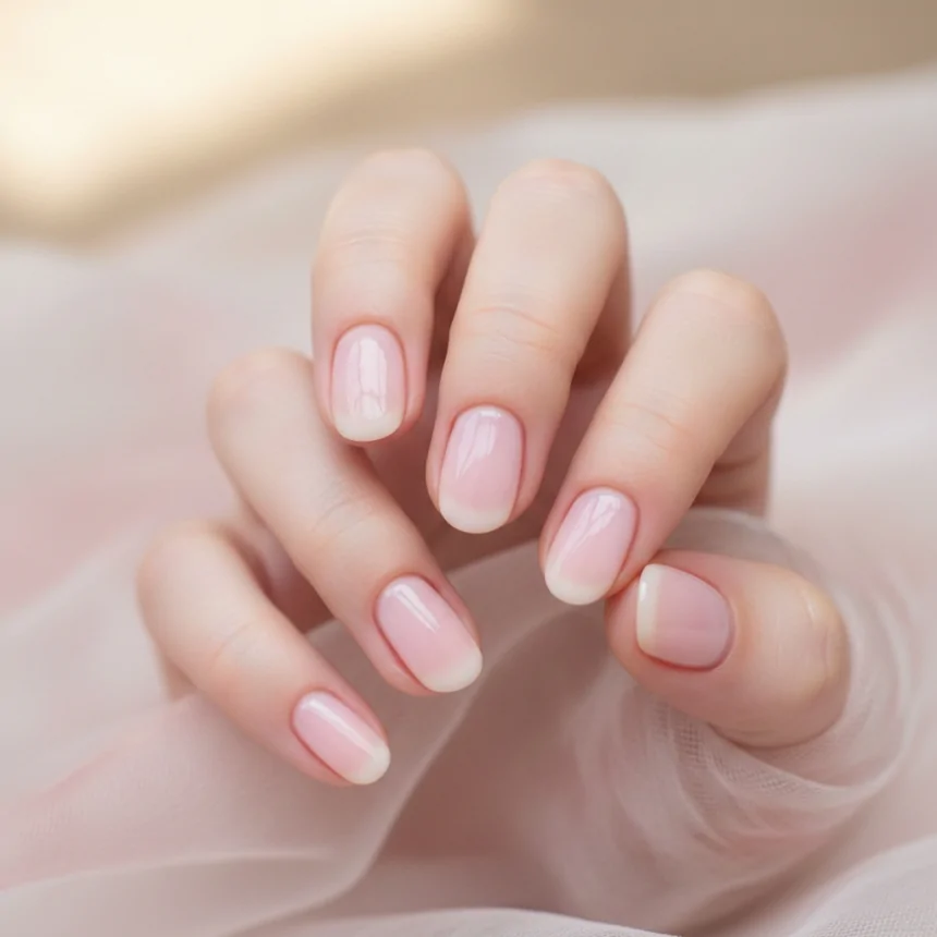 This "clean girl aesthetic" manicure is perfect for a natural, polished look. The sheer pink gives a healthy glow to your nails, making them look effortlessly chic and refined. It’s a versatile option for any dress color and is perfect for prom nails, short and simple styles.