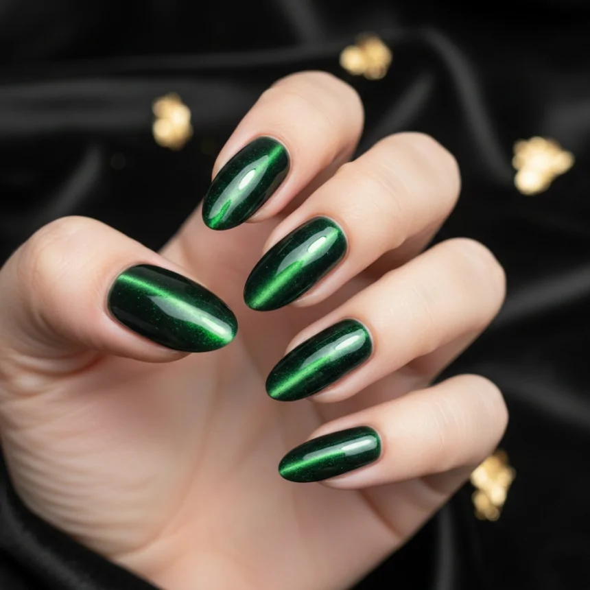 For a truly captivating and luxurious look, emerald green cat eye nails are showstoppers. The magnetic shimmer adds depth and a unique visual effect, while the rich color is sophisticated. Perfect for a bold and glamorous prom statement.