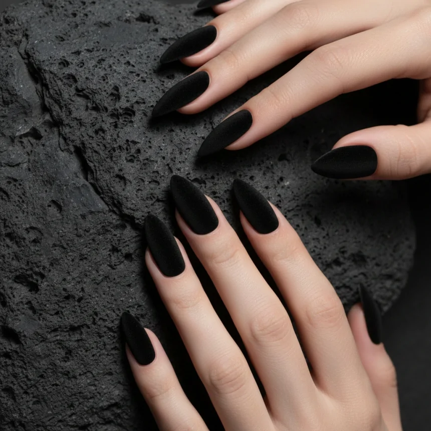 Matte black offers an incredibly chic and sophisticated alternative to glossy finishes. On almond nails, it provides a sleek, modern edge that is both dramatic and refined. An excellent choice for prom nails black that make a statement.