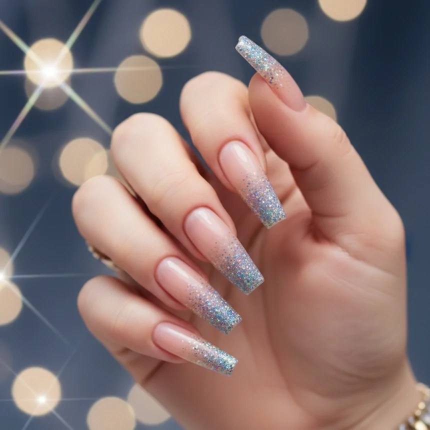For those who love glitter but want it to feel modern and clean, a transparent glitter overlay is perfect. It’s like magic on your fingertips, adding an intense sparkle that feels sophisticated and on-trend. Great for prom nails acrylic looks that truly shine.