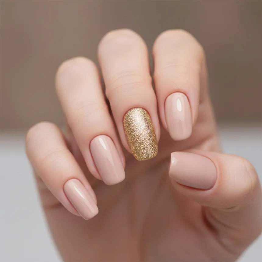 35. Glitter Accent Nail (Gold)