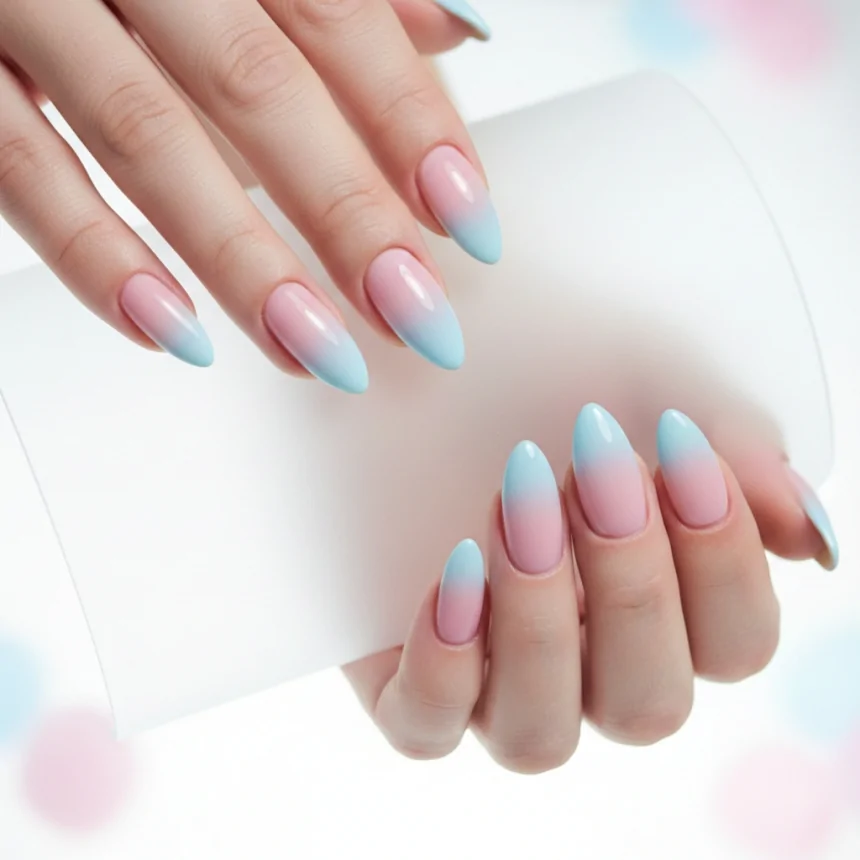 This whimsical pastel ombré is perfect for a romantic and dreamy prom look. The blend of pink and blue creates a soft, ethereal vibe that is both trendy and beautiful. It’s a clean and artistic prom nails design.